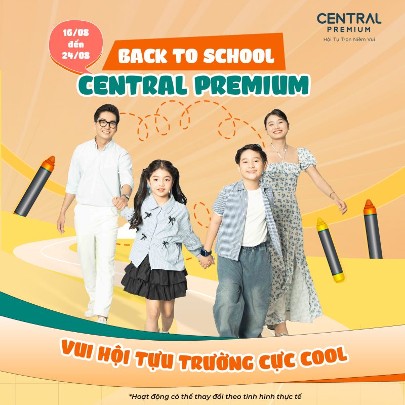 Tháng 8 này, TTTM Central Premium rộn ràng chào đón năm học mới với sự kiện “Back To School” siêu hấp dẫn, mang đến chuỗi hoạt động vui nhộn, trải nghiệm độc đáo cùng nhiều phần quà “xịn xò” dành cho cả gia đình.