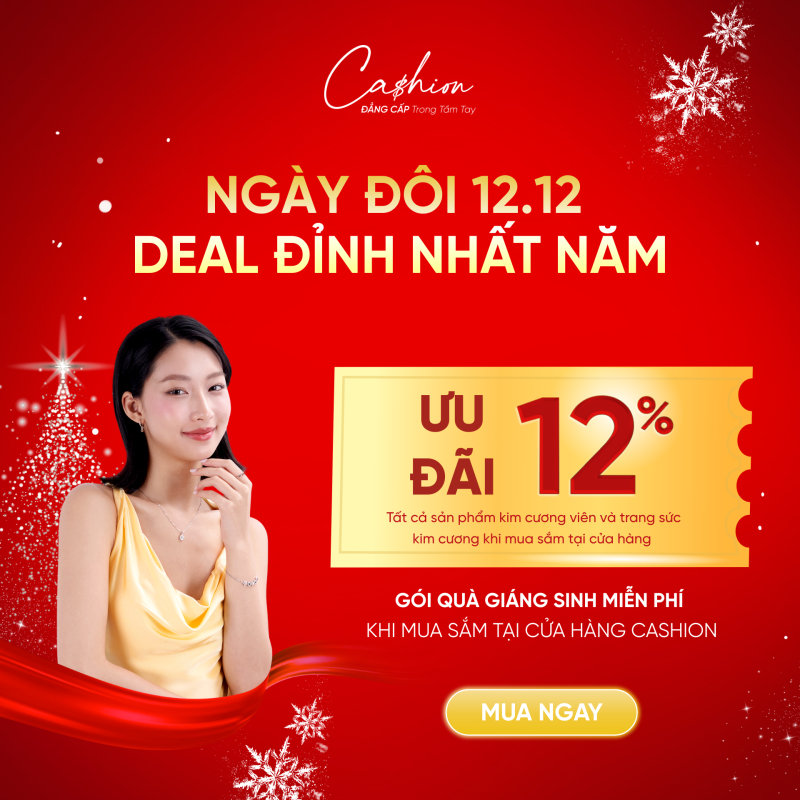 🎁 Ưu đãi 12% tất cả sản phẩm kim cương viên và trang sức kim cương khi mua sắm tại cửa hàng Cashion.