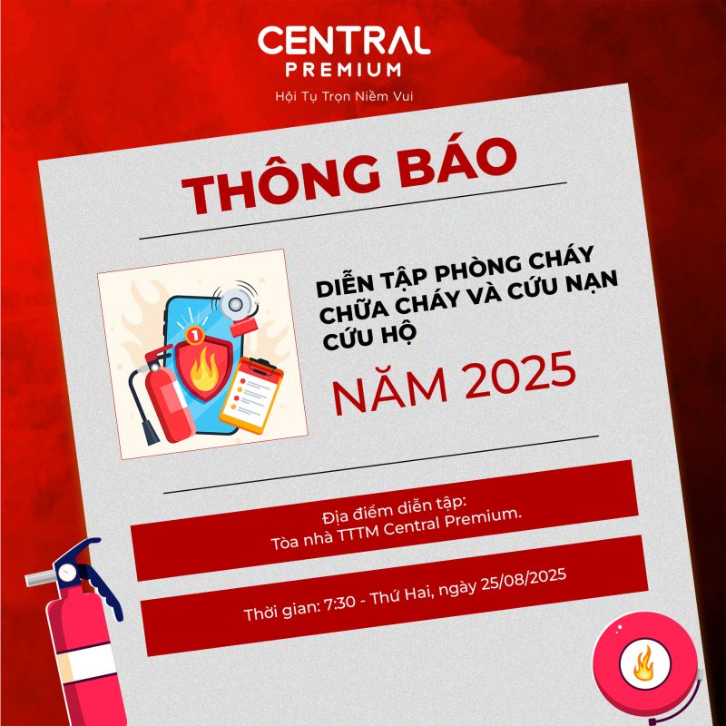 🛎️ TTTM Central Premium trân trọng thông báo kế hoạch diễn tập như trên, sau buổi diễn tập các hoạt động vận hành tại TTTM diễn ra bình thường, Quý Khách hàng có thể yên tâm mua sắm.